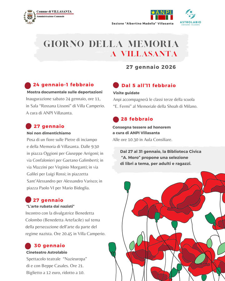 da lunedì a venerdì è possibile prenotare visite guidate per scuole e associazioni scrivendo a: anpivillasanta@gmail.com