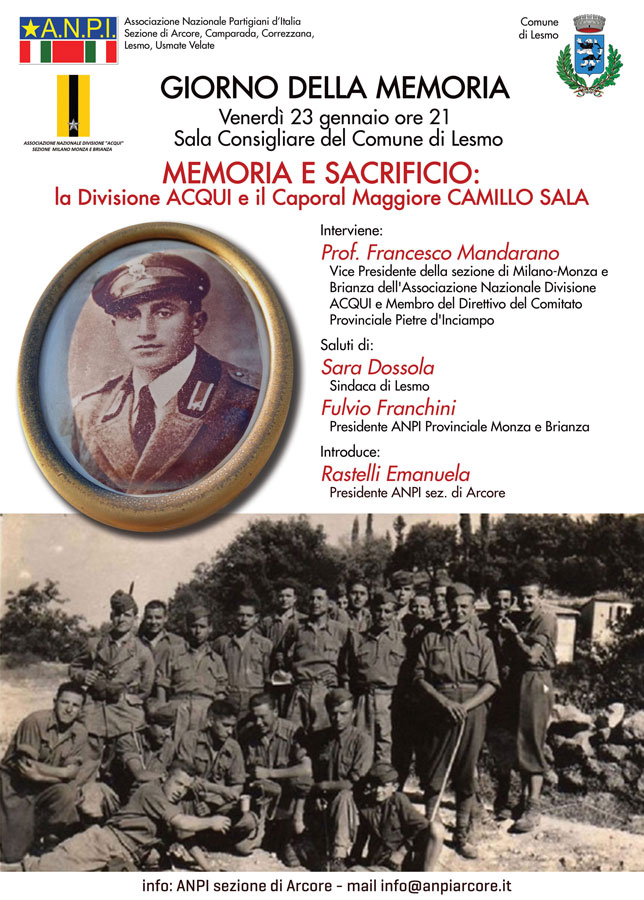 Lesmo: MEMORIA E SACRIFICIO - la Divisione ACQUI e il Caporal Maggiore CAMILLO SALA