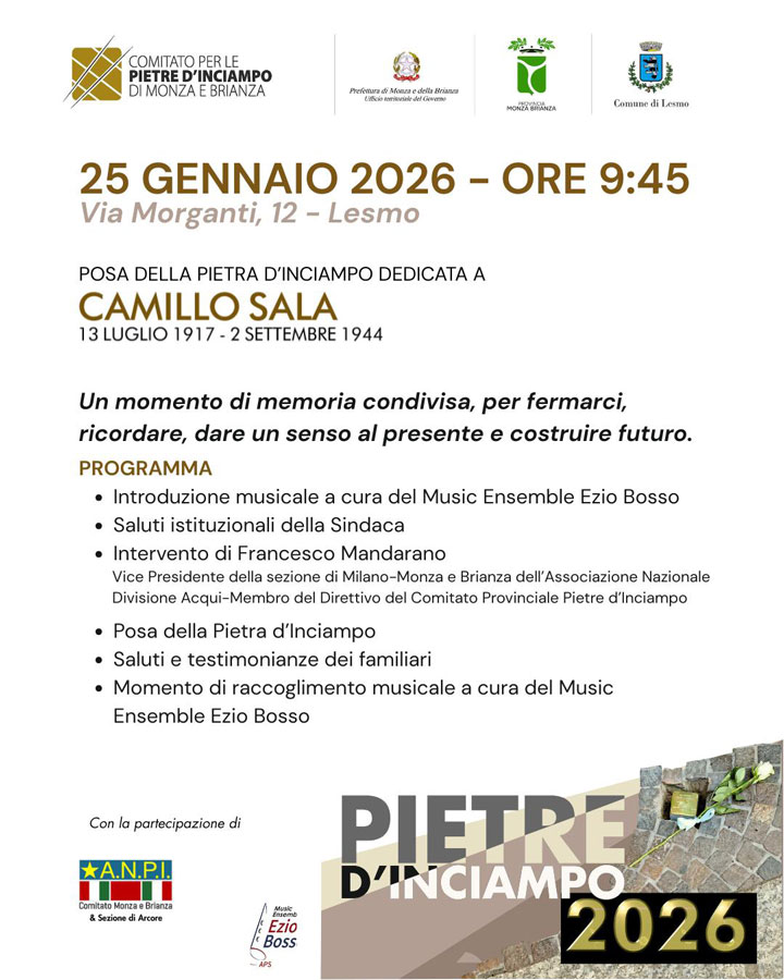 Cesano Maderno: Posa delle PIETRA D'INCIAMPO dedicate a MASSIMO COLOMBO, UMBERTO GIUSSANI, MARIO RADICE e ANGELO REGUZZI