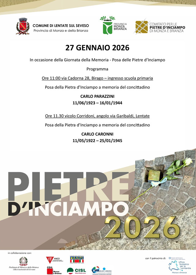 Lentate sul Seveso: Posa della PIETRA D'INCIAMPO dedicata a CARLO CARAZZINI e CARLO CARONNI