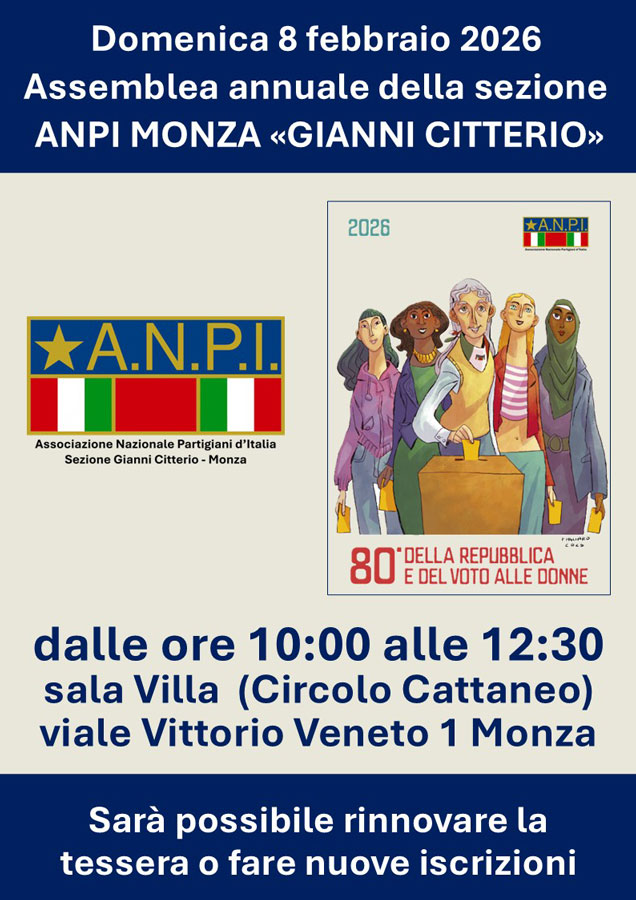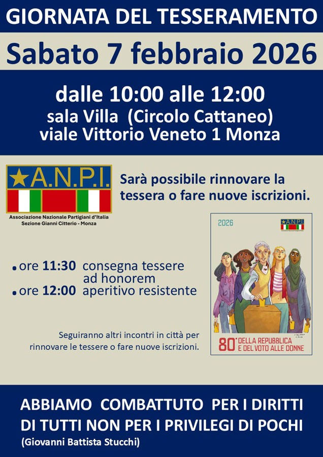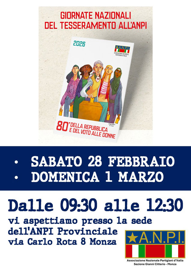 Vi aspettiamo giovedì 19 febbraio alle ore 21 presso la sede provinciale ANPI Monza Brianza in via Carlo Rota 8 a Monza.