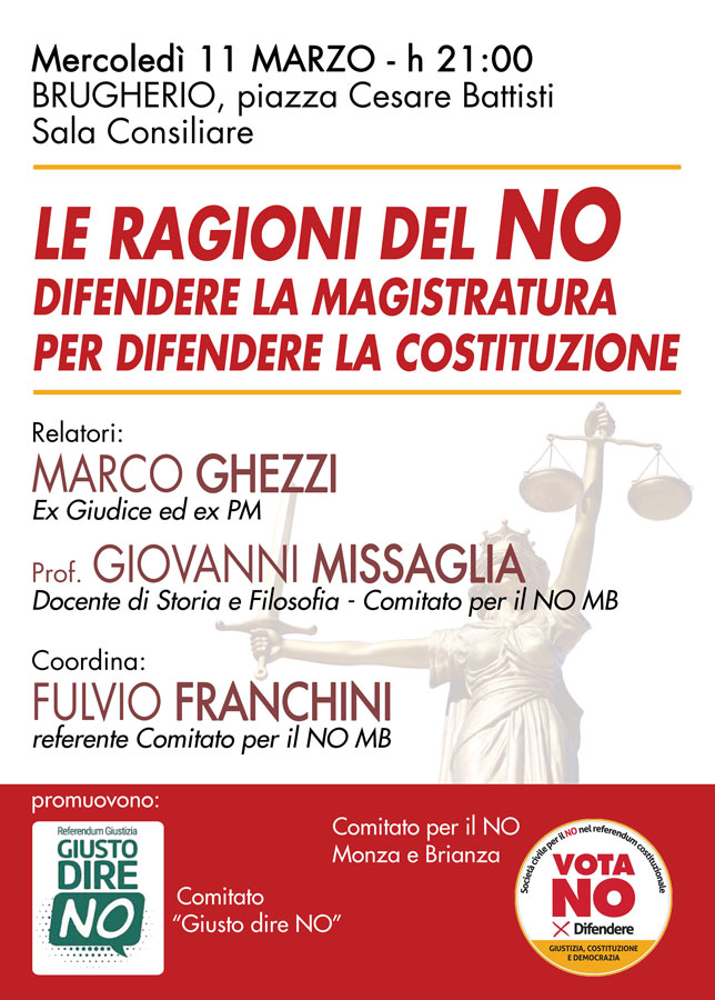 Brugherio: LE RAGIONI DEL NO - DIFENDERE LA MAGISTRATURA PER DIFENDERE LA COSTITUZIONE