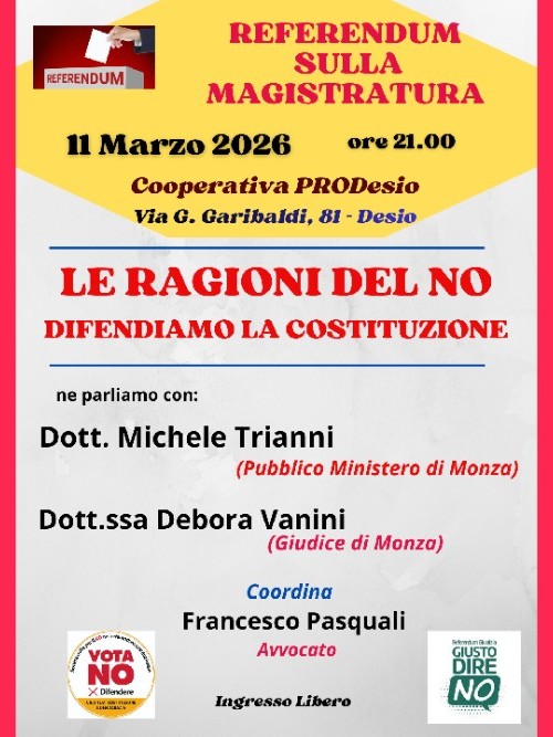 Iniziativa a Desio per discutere del prossimo referendum sulla Magistratura
