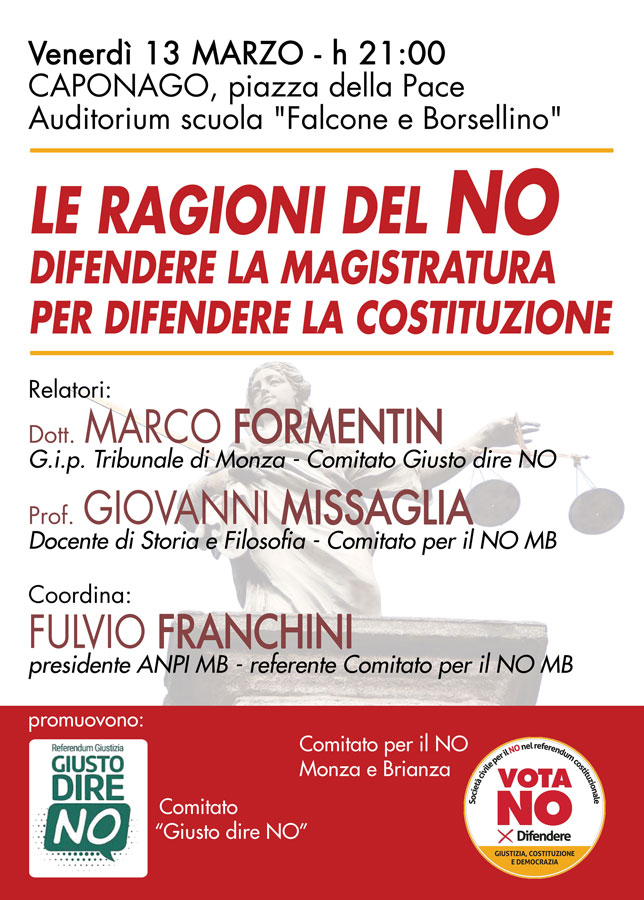 Caponago: LE RAGIONI DEL NO - DIFENDERE LA MAGISTRATURA PER DIFENDERE LA COSTITUZIONE