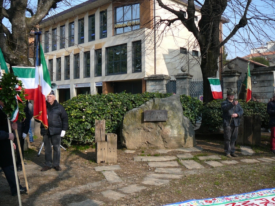 Gli studenti della classe IV A dell'Istituto Comprensivo Romagnosi con l'insegnante Massimiliana Mussi espongono il bellissimo lavoro realizzato in collaborazione con Enrico Mason del Comitato Unitario Antifascista ed elaborato per ricordare i Partigiani Caratesi.