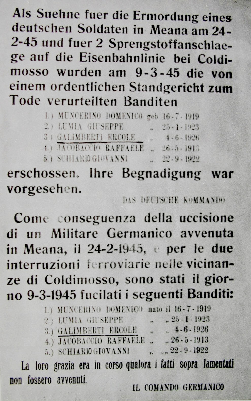 tedesco viene ucciso. Per rappresaglia, il Comando tedesco ordina la fucilazione di cinque